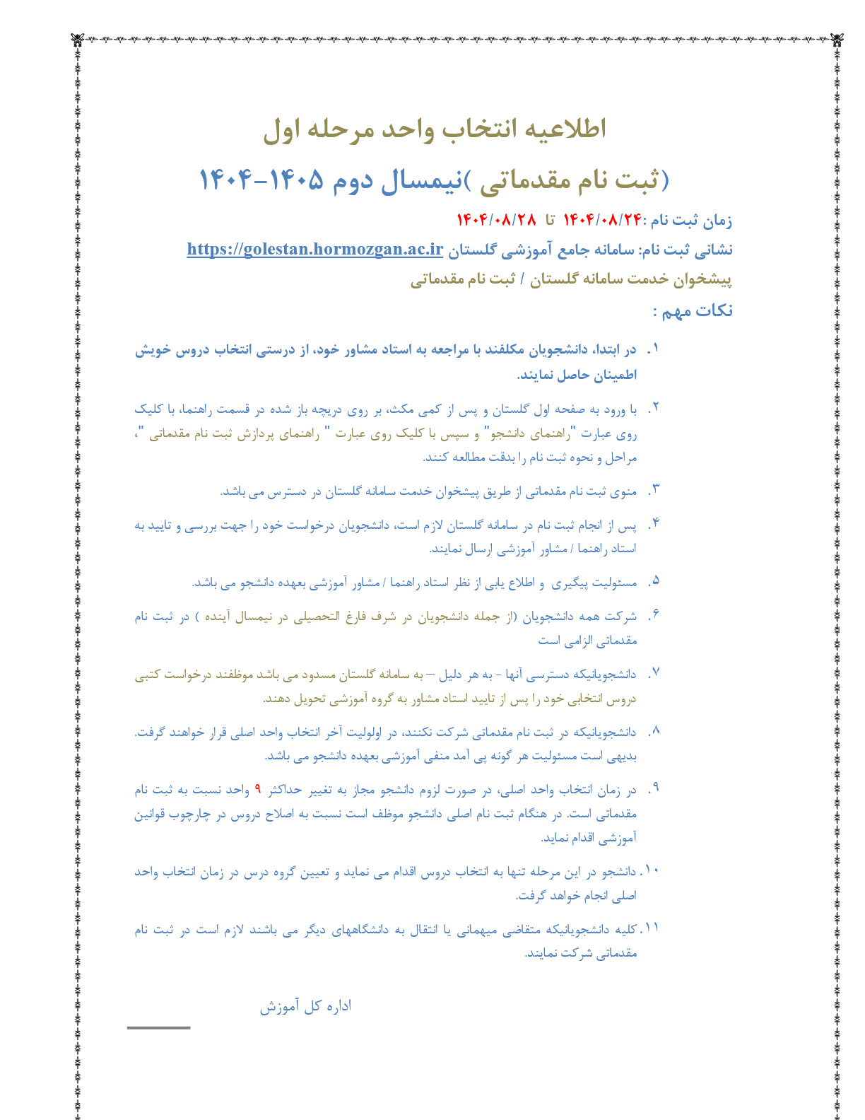 اطلاعیه ثبت نام مقدمانی