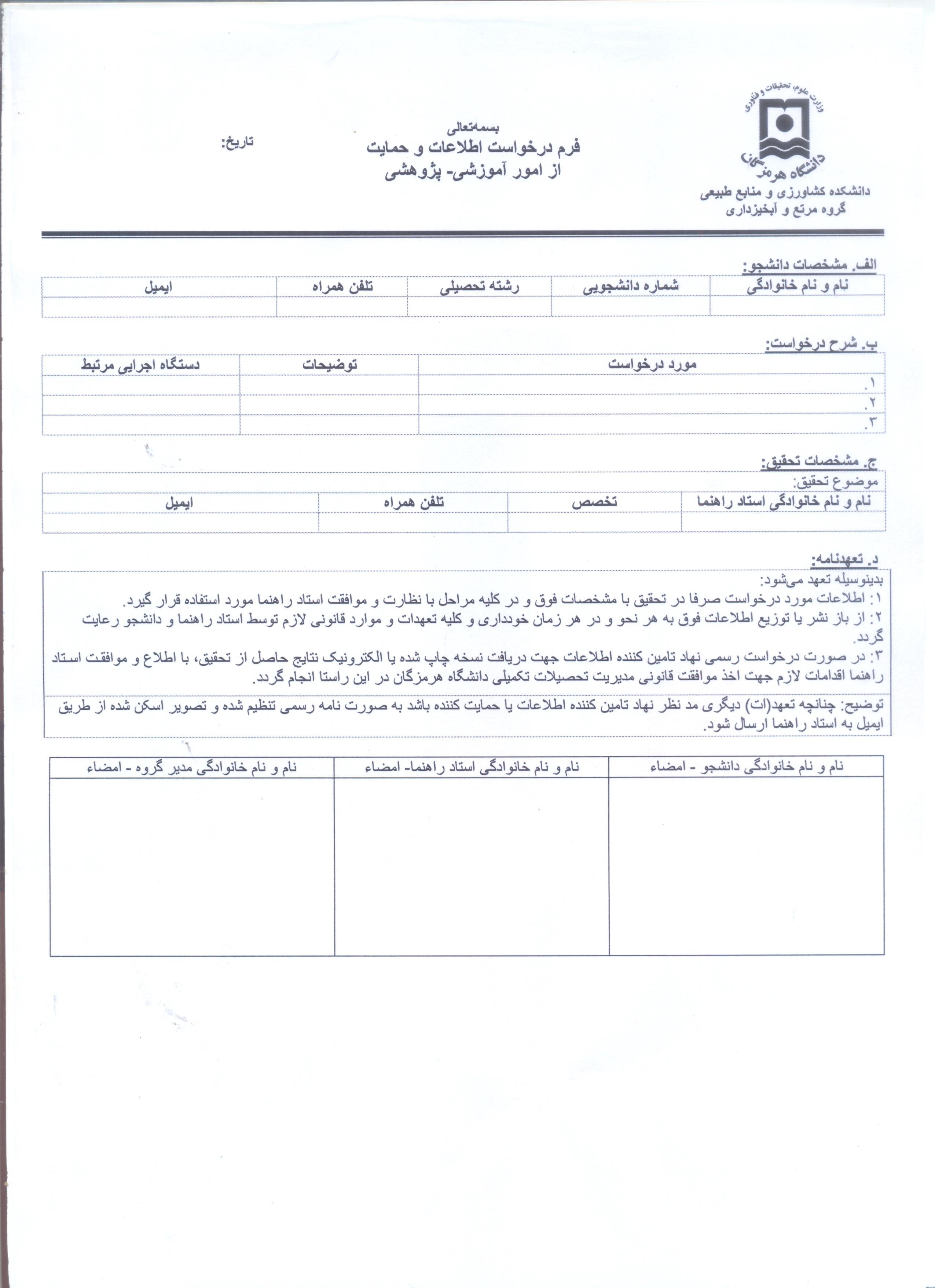 فرم درخواست داده از ادارات خارج ازدانشگاه(2046)